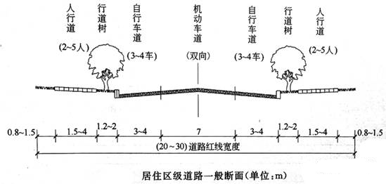 1).居民區(qū)級(jí)道路:道路紅線之間的道路各項(xiàng)用地寬總和。