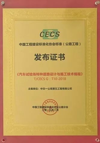 2月27日,經中國工程建設標準化協會審查,國內首部《汽車試驗場特種道路設計與施工技術規程》正式發布,《規程》自2019年5月1日起施行