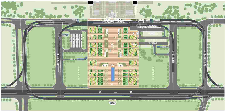 2、與西廣場相接的地面道路,由廣場外圍經一路、廣場內部車站北路、車站北二路、車站南路、車站南二路共五條道路組成,總長約2697米;