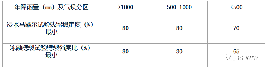 注:對(duì)于有條件的地方,為了減少凍融劈裂試驗(yàn)因空隙變異而造成的試驗(yàn)結(jié)果的偏差??刹捎每刂圃嚰尚涂障堵实腁ASHTOT283方法,指標(biāo)同凍融劈裂試驗(yàn)要求。
