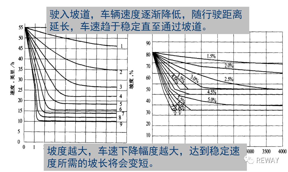 車(chē)輛行駛速度與坡度和坡長(zhǎng)關(guān)系:
