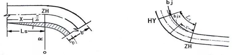 為適應行車軌跡,順適地進行寬度變化而設置的加寬過渡段為加寬緩和段