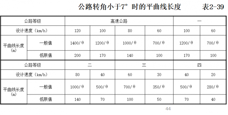 1、平曲線最小長度計算