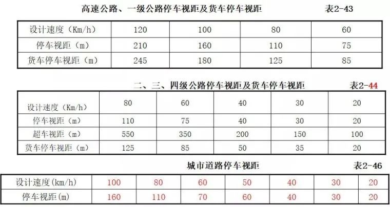 停車視距、會車視距、超車視距