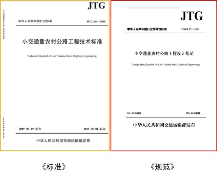 近年,為貫徹國家“四好農村路”政策,支撐“鄉村振興戰略”實施,交通運輸部正式印發《農村公路中長期發展綱要》,明確了今后農村公路建設發展的側重和目標。另外,交通運輸部為指導農村公路建設,于2019年就發布實施了《小交通量農村公路工程技術標準》(JTG 2111—2019,以下簡稱該《標準》);于2021年就發布實施了《小交通量農村公路工程技術規范》(JTG /3311—2021,以下簡稱該《規范》)。