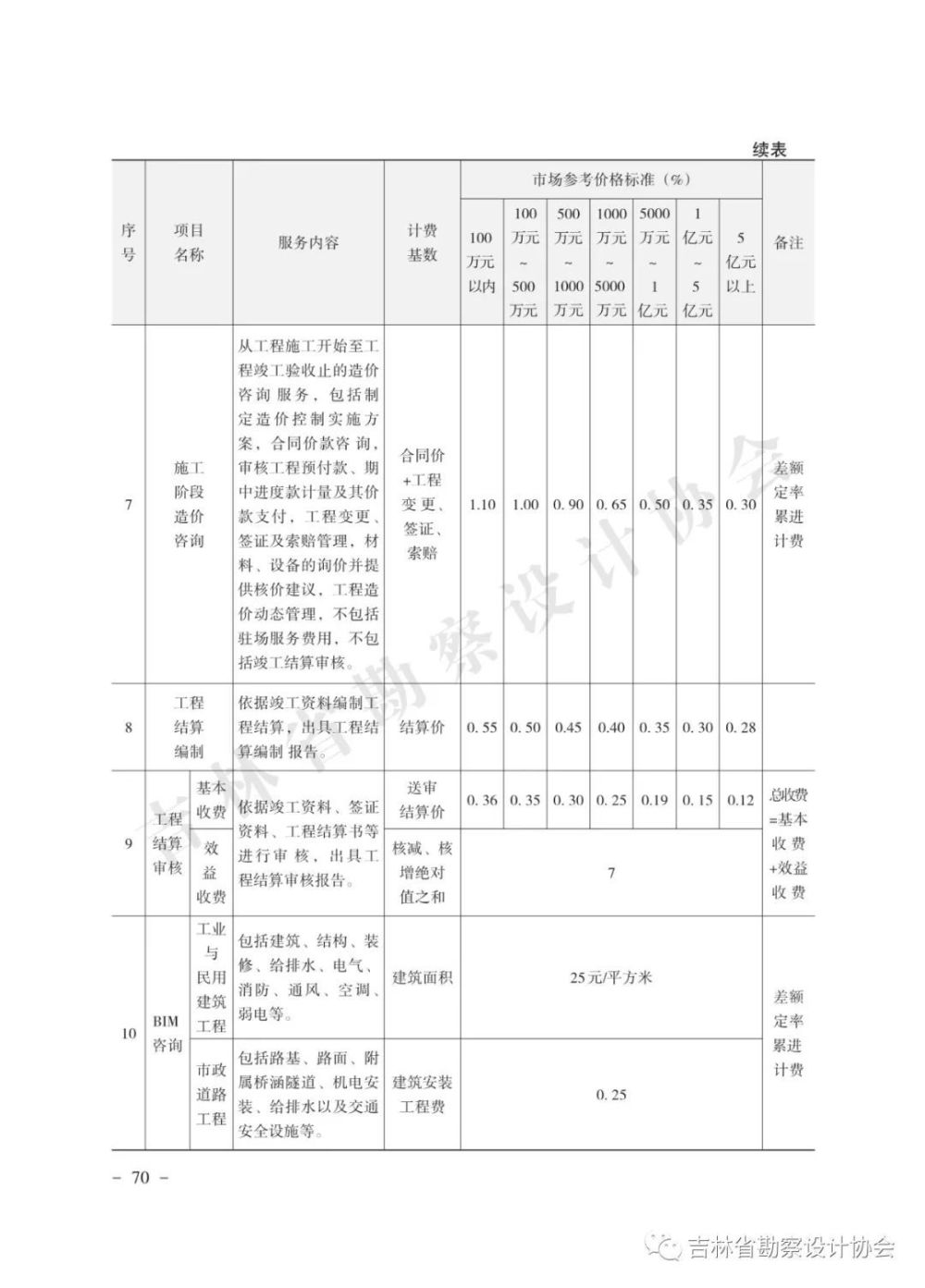 為進(jìn)一步維護(hù)公平有序的市場(chǎng)環(huán)境,引導(dǎo)勘察設(shè)計(jì)市場(chǎng)健康發(fā)展,近日,吉林省工程勘察設(shè)計(jì)行業(yè)協(xié)會(huì)發(fā)布地方工程勘察設(shè)計(jì)收費(fèi)導(dǎo)則,對(duì)工程勘察、建筑工程、全過(guò)程工程咨詢、市政工程設(shè)計(jì)收費(fèi)進(jìn)行規(guī)定。