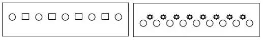 比如,盆花放置時(shí)利用變?nèi)~木和散尾葵兩種質(zhì)地、顏色、高度等完全不相近的盆栽間隔擺放,形成既有分割空間作用還不至于隔斷空間、增強(qiáng)通透性的效果,還能打破一種盆栽的單調(diào)、呆板的氛圍。圖2表示間隔韻律。左圖表示中間間隔另一種不同的植物,結(jié)合連續(xù)韻律表現(xiàn)。右圖表示同種植物間間隔不同的植物并且間隔距離漸變,形成間隔韻律,結(jié)合漸變韻律共同表現(xiàn)。