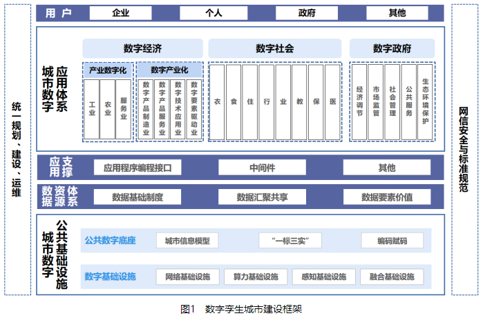 基于統一編碼與時空定位,以城市信息模型(CIM)為空間架構,按照統一標準地址對城市實有建筑(房屋)、實有單位、實有人口(“一標三實”)進行統一的、唯一的永久數字身份編碼并基于CIM實現落圖,構建物理城市的數字孿生體的公共性、基礎性數字底座,包括城市信息模型、“一標三實”、分類與編碼、數據治理和其他5個子類標準。